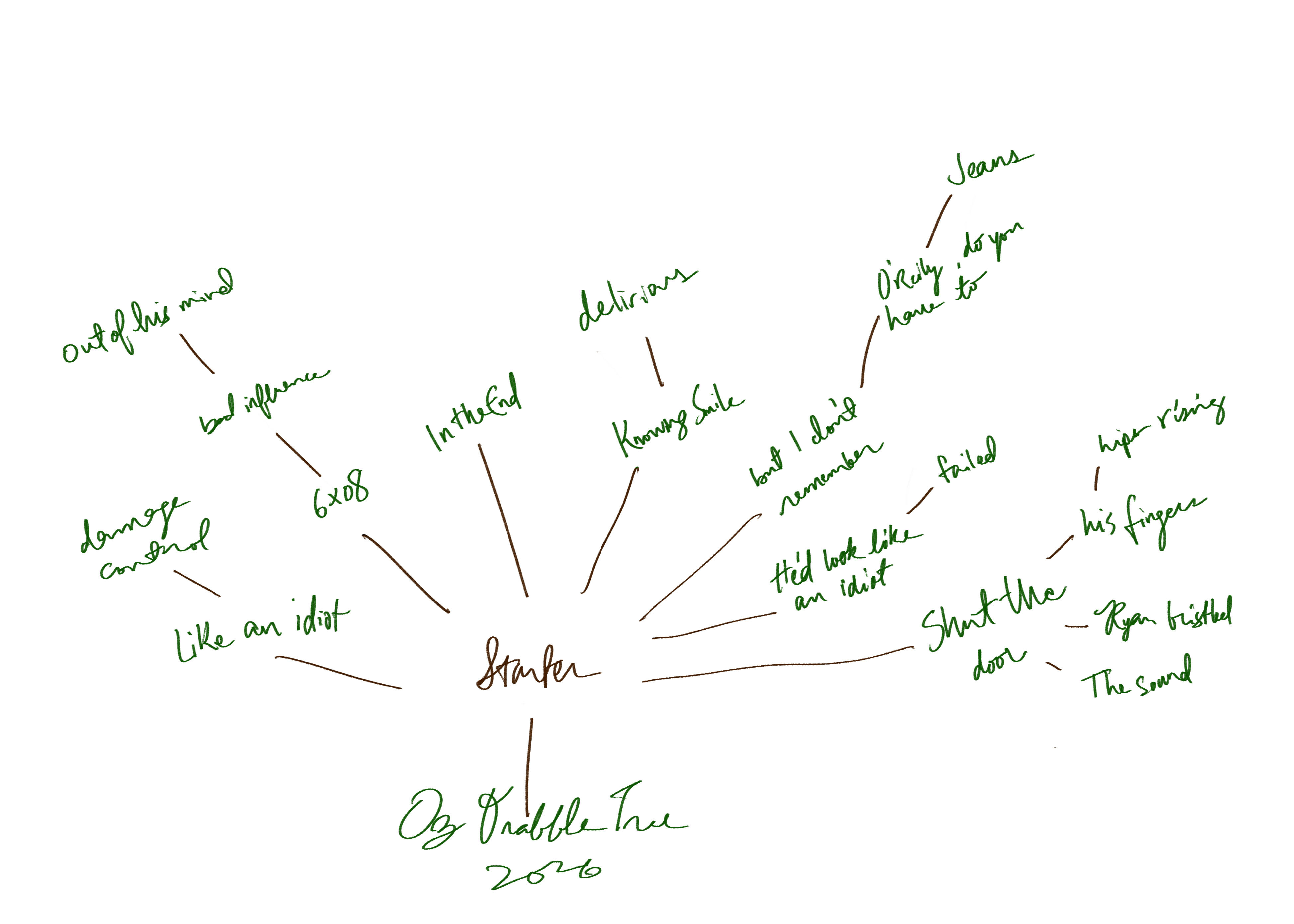 This is my third year participating in Oz Drabble Tree and I thought this year I would track our tree's growth... digitally, that is! In the past, I've always drawn the tree on paper but this year I'm going to periodically update the tree with a new picture so we can see it's growth pattern. We've got a lot more lower branches this year so I'm excited to see what it ends up looking like!